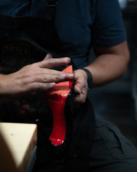 If you own a pair of Christian Louboutin shoes, you know the struggle of keeping the red bottoms red and free of wear. Our Artisans have the perfect remedy to this problem – red rubber sole protectors. As demonstrated, these sole protectors enable the sole to last longer, feel more comfortable, and have great traction for walking and overall balance. Oh yeah, and they look beautiful!